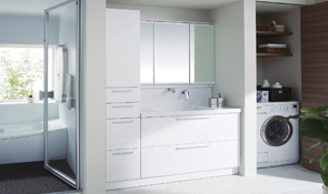 散らかりがちな小物の収納ができて、家電の充電ができるコンセント内蔵タイプのミラーキャビネットなど、「収納できる水まわり」が主流となっています。